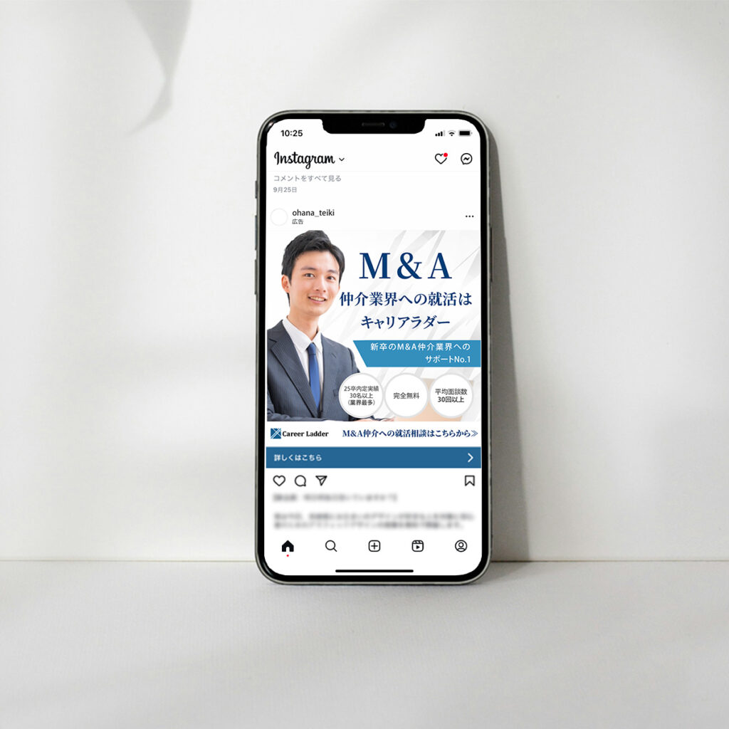 Webサービスのバナー2 waradesign / 2025年2月24日 ターゲット層:2026年度卒の高学歴大学生掲載場所:Google広告20代(22~23歳)がターゲットと年齢層が若いため、高級感を取り入れつつ爽やかさを意識しました。